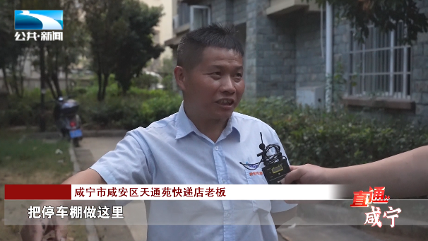 咸宁市咸安区天通苑 快递店老板:“把停车棚做这里,我没法做生意了,每天送快递的车没地方停了。”